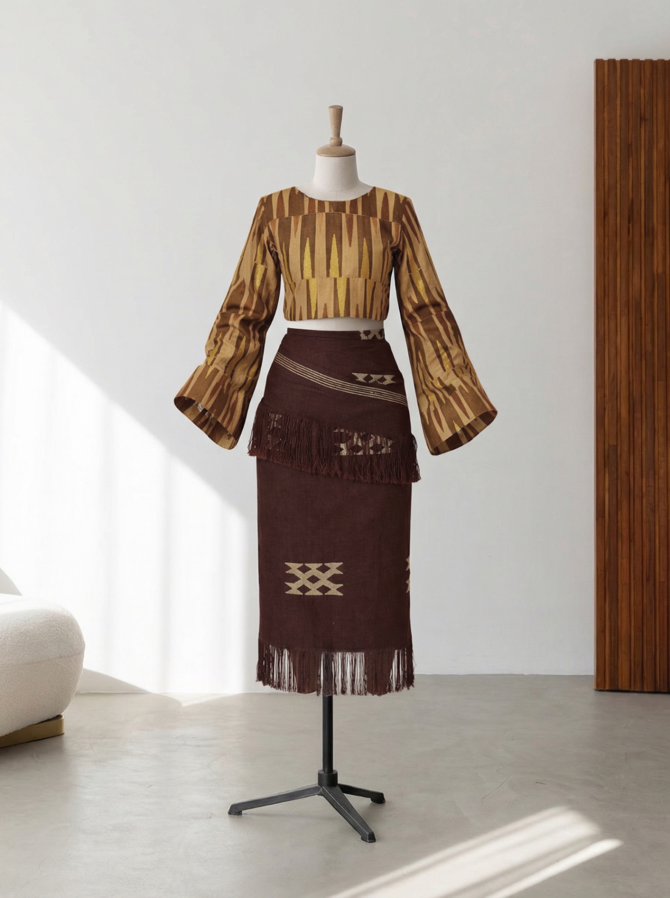 Elegant hand-woven luxury skirt paired with a beautifully structured top, modernizing the timeless iro buba style for a sophisticated look. Delivery for preorder is within 2-3weeks. Note : Send us an email for custom sizes on info@arathebrand.com Sizes above 16 are at an additional cost.